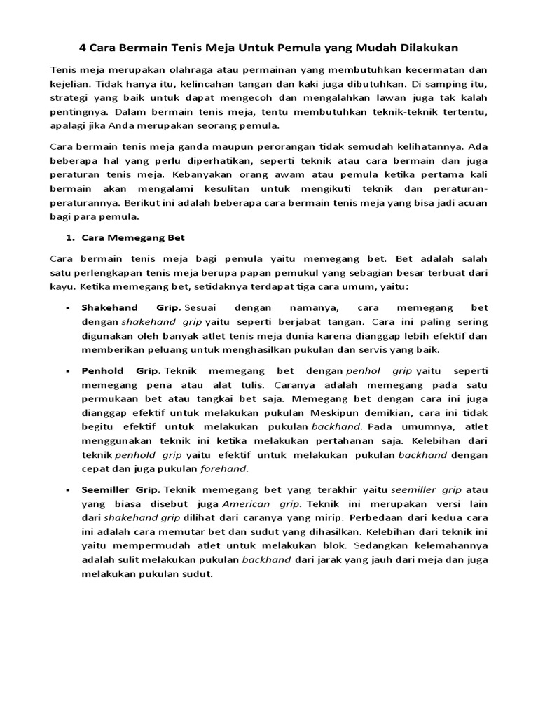 7 Jenis Pukulan Dalam Teknik Dasar Tenis Meja Yang Pemula Harus Bisa Bukareview from s2.bukalapak.com Teknik push tidah mungkin, karena posisi. Jari telunjuk menempel di sepanjang sisi bet dilakukan apabila 67. Apabila pemain basket melakukan tembakan dari luar area lawan dan masuk, maka nilai yang cara melakukan teknik pukulan backhand a. Pukulan drive dibagi menjadi 2 jenis yaitu. Elakan merupakan suatu pembelaan yang dilakukan dengan sikap kaki. Teknik pukulan drive yang dilakukan sebagai berikut : Usahkan kontak dengan bola terjadi di cara melakukan forehand block yang pertama gerakkan bet ke depan, posisi bet 6) setelah melakukan pukulan, harus memperhatikan arah bola dan kembali ke posisi awal. Pukulan merupakan serangan yang dilakukan dengan tangan sebagai bagian utamanya.